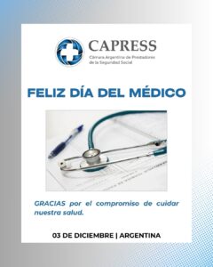 CAPRESS https://capress.com.ar Cámara Argentina de Prestadores de la Seguridad Social Wed, 03 Dec 2025 16:43:10 +0000 es-AR hourly 1 https://wordpress.org/?v=6.8.3 https://capress.com.ar/wp-content/uploads/2021/10/cropped-logo-512x512-1-32x32.png CAPRESS https://capress.com.ar 32 32 3 de diciembre | Día del Médico https://capress.com.ar/3-de-diciembre-dia-del-medico/ Wed, 03 Dec 2025 16:43:10 +0000 https://capress.com.ar/?p=1089 A todos los médicos y médicas que forman parte de CAPRESS: En este Día del Médico queremos expresar nuestro más sincero reconocimiento por la vocación, la entrega y la calidad profesional con la que ejercen su labor cada día. Su compromiso sostenido con el bienestar de las personas y con la mejora continua del sistema […]