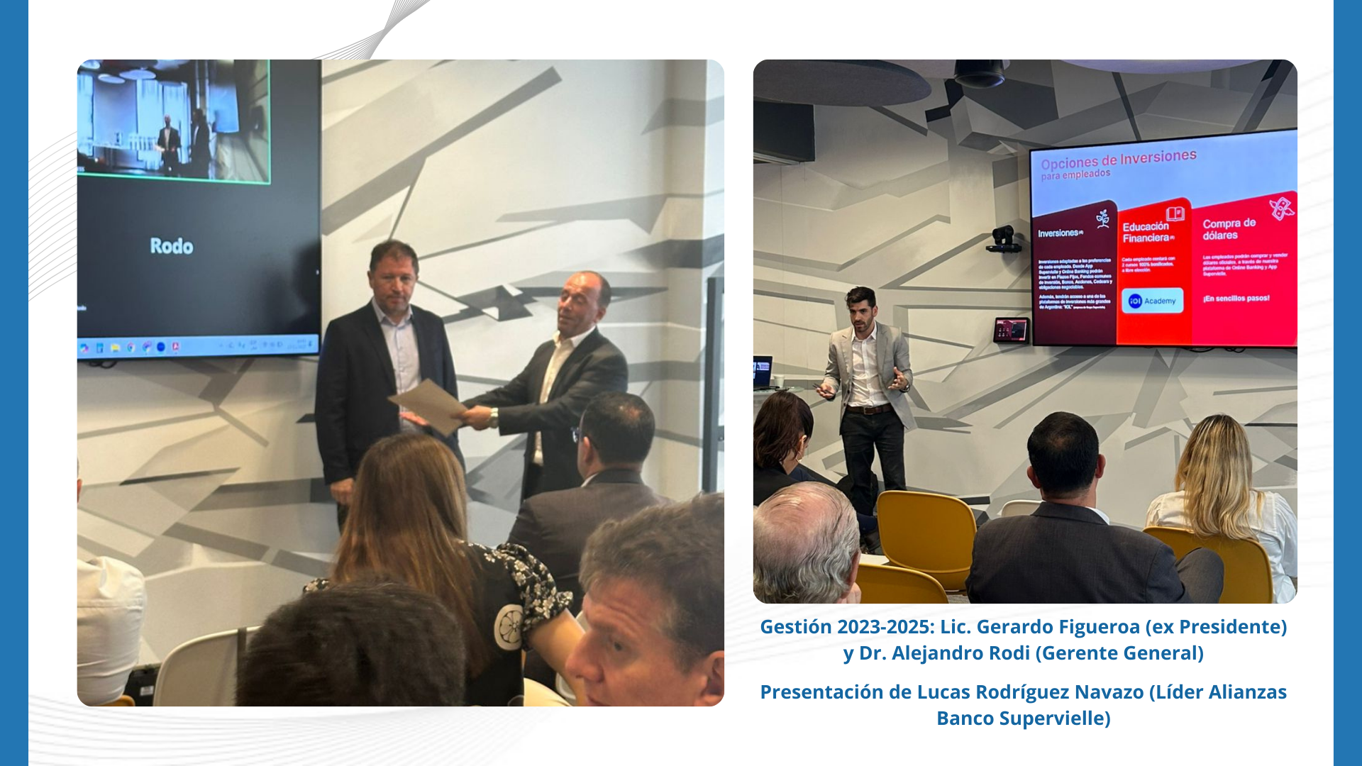 El inicio de la jornada, estuvo a cargo del Lic. Gerardo Figueroa – ex Presidente 2023-2025 – y del Dr. Alejandro Rodi, a cargo de la Gerencia General; quienes compartieron un resumen de las principales acciones y gestiones realizadas. La jornada se desarrolló en modalidad presencial y virtual, en el Auditorio del Banco Supervielle, en la Ciudad Autónoma de Buenos Aires, y contó con la participación de los socios, quienes compartieron un desayuno de trabajo. Posteriormente, se llevó adelante la elección de las nuevas autoridades.